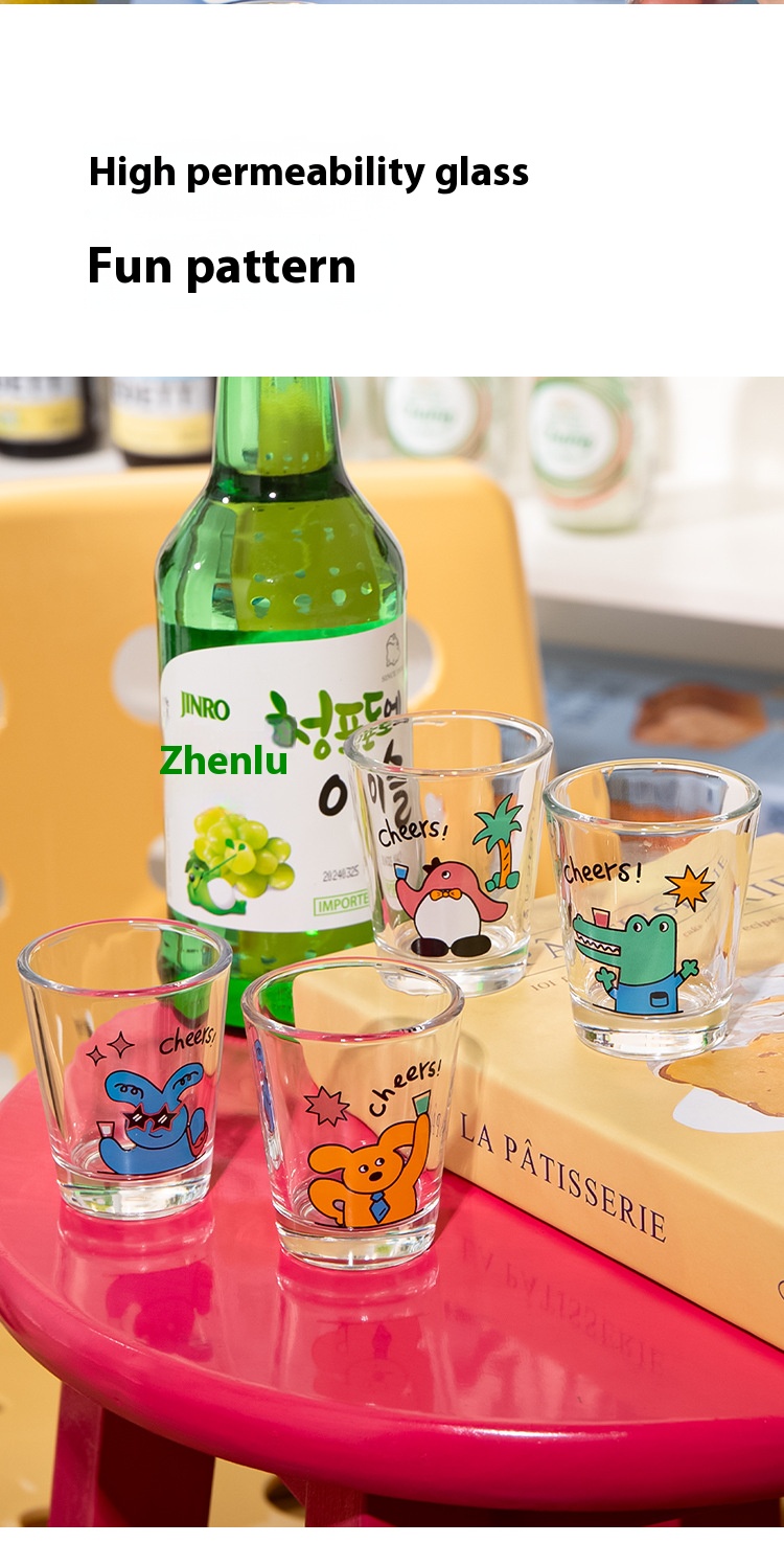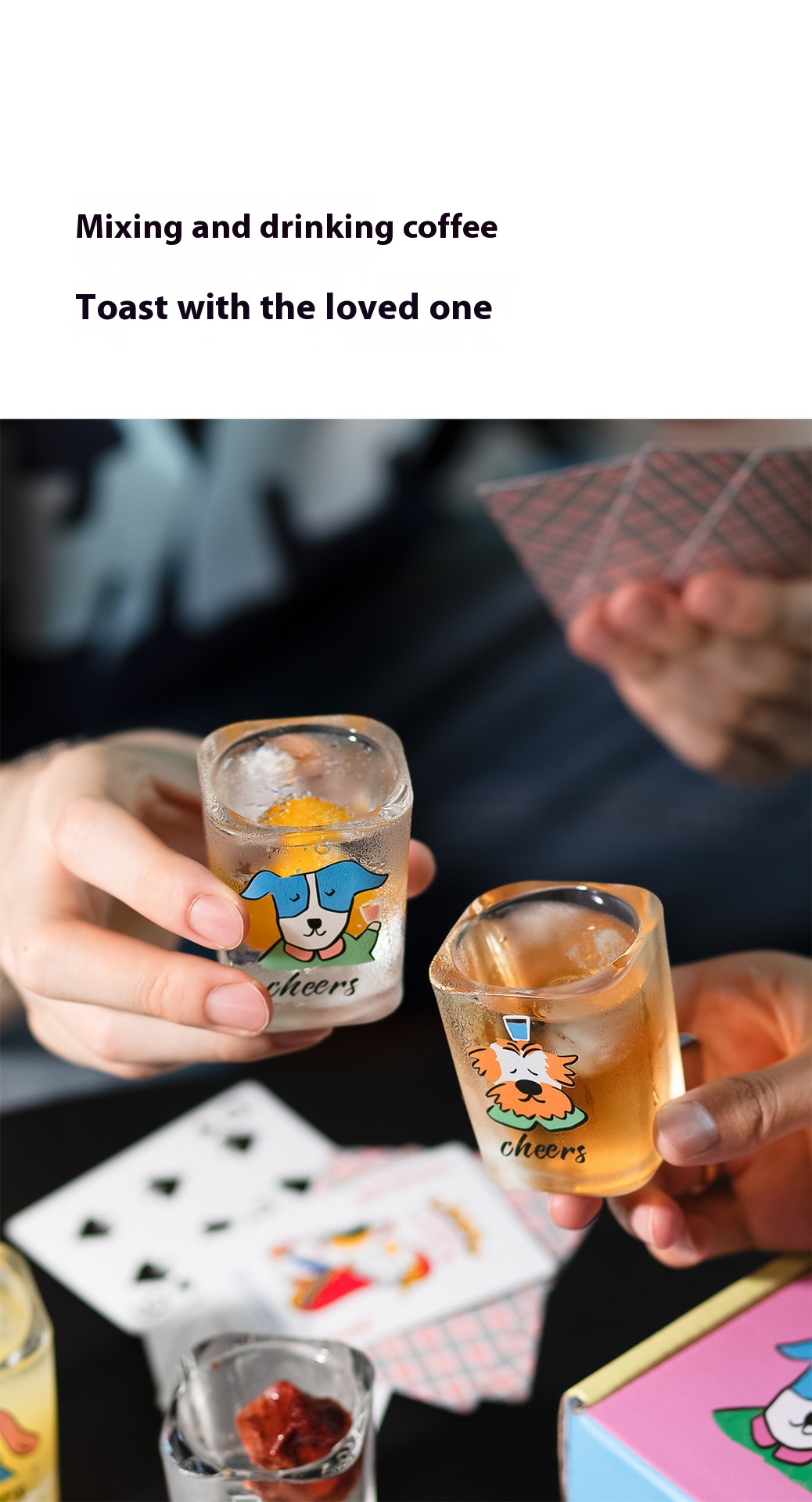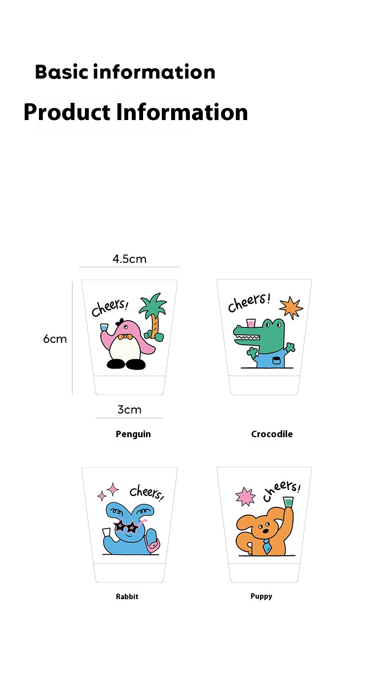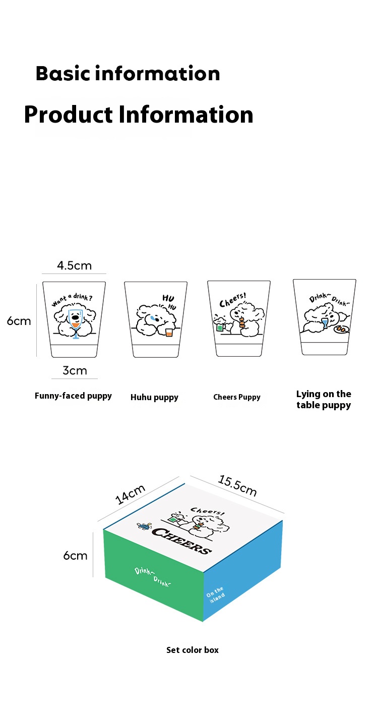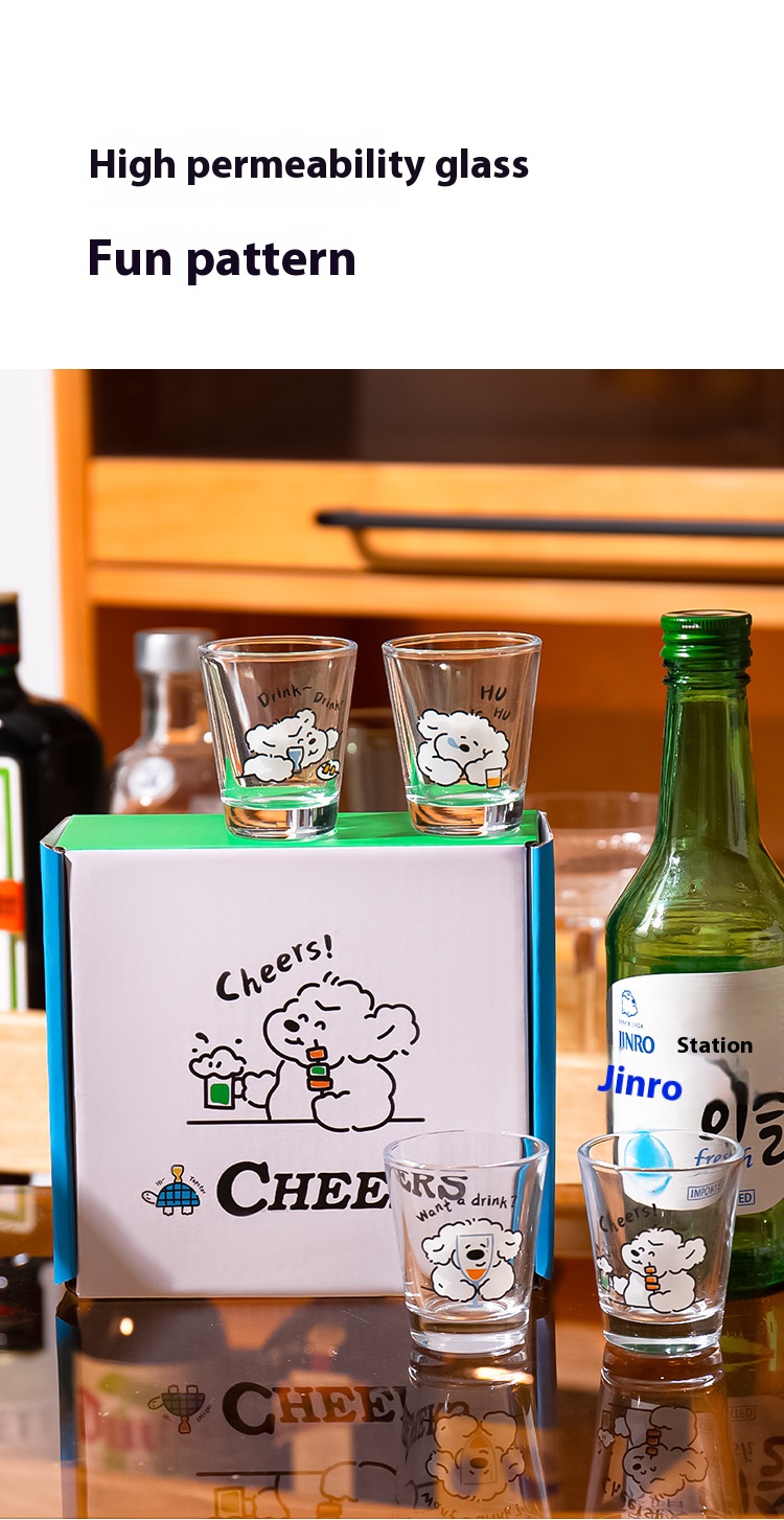 4 pcs/ set of Soju Mug Zoo Animal Dog Pattern White Wine Mug Family Party BFG Lovely Glass Cup