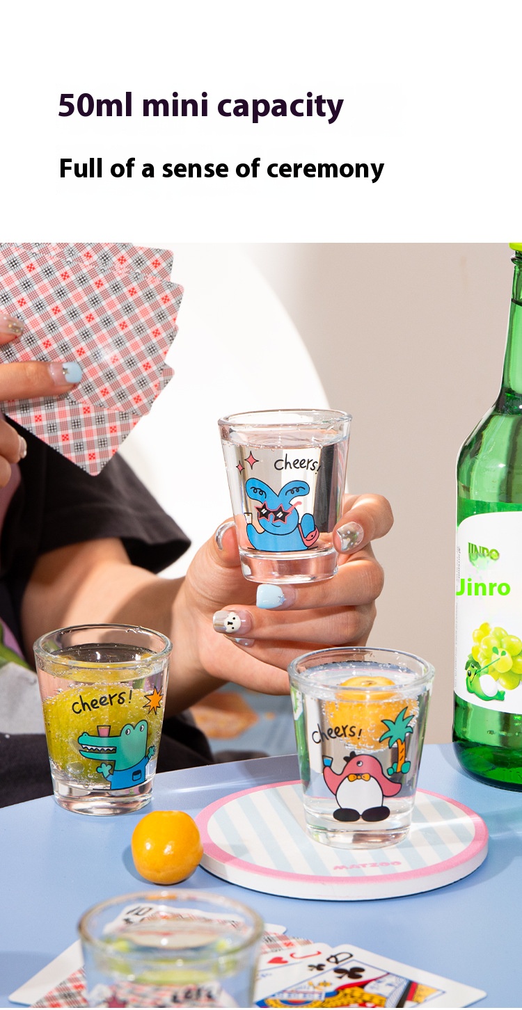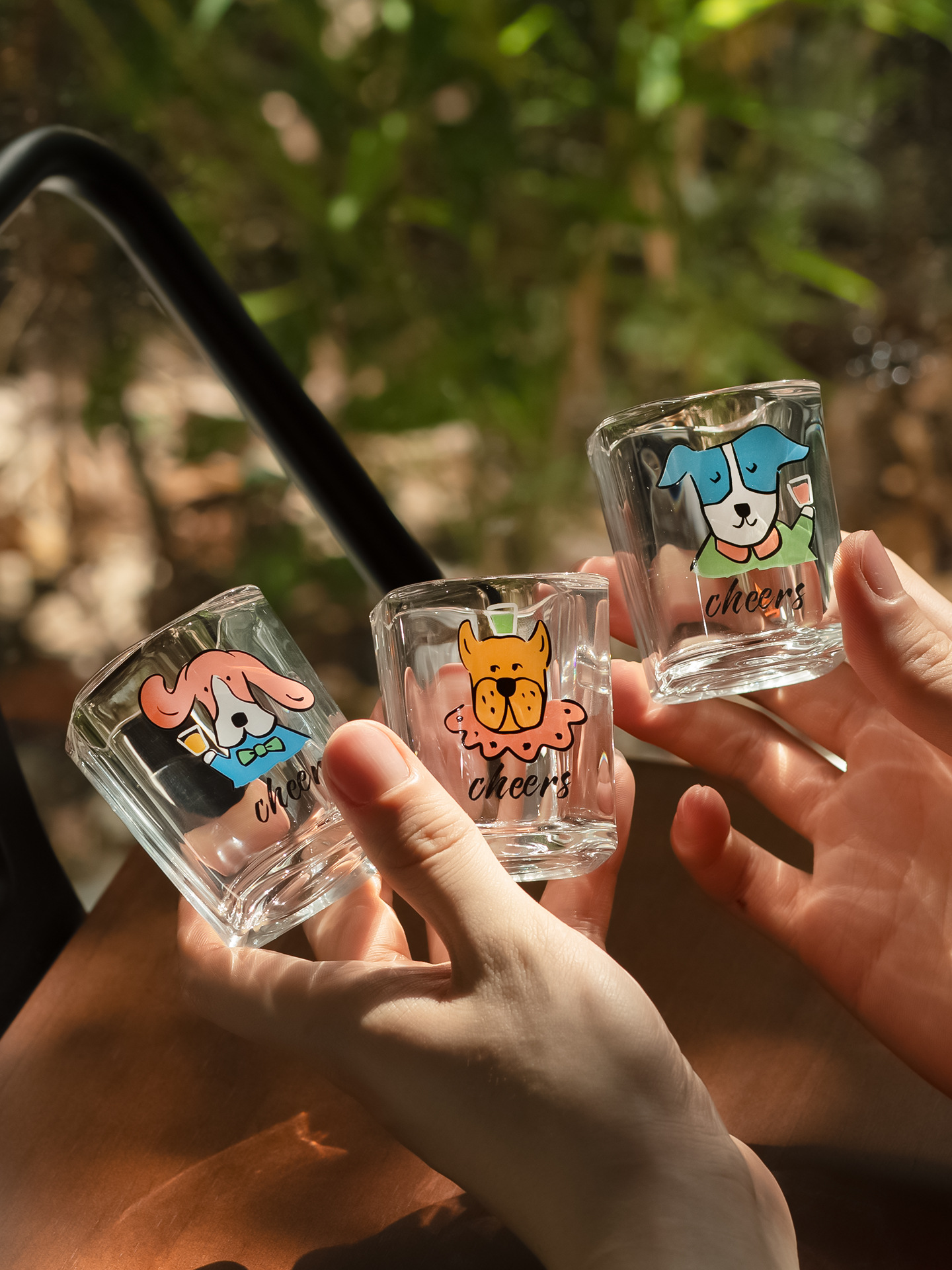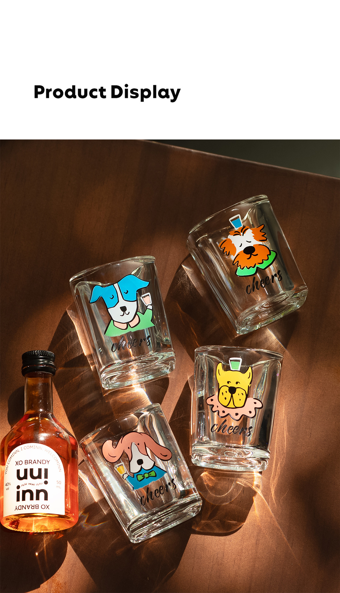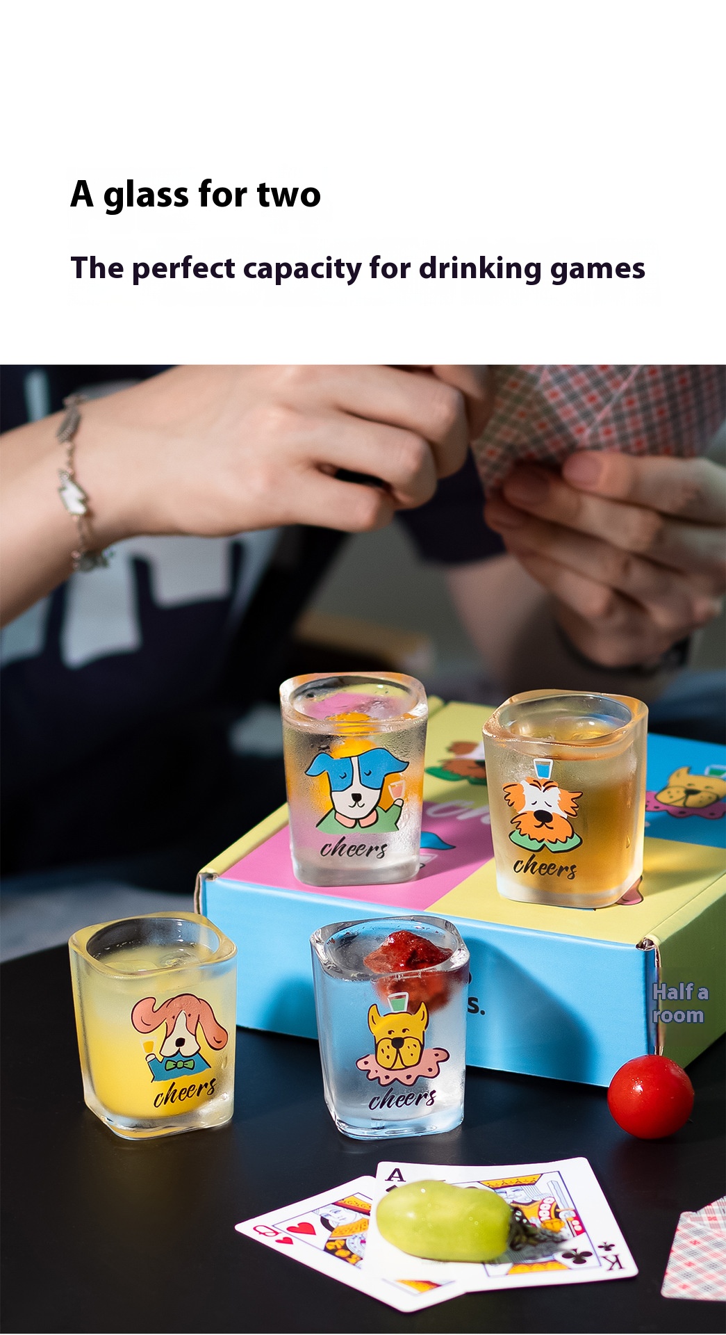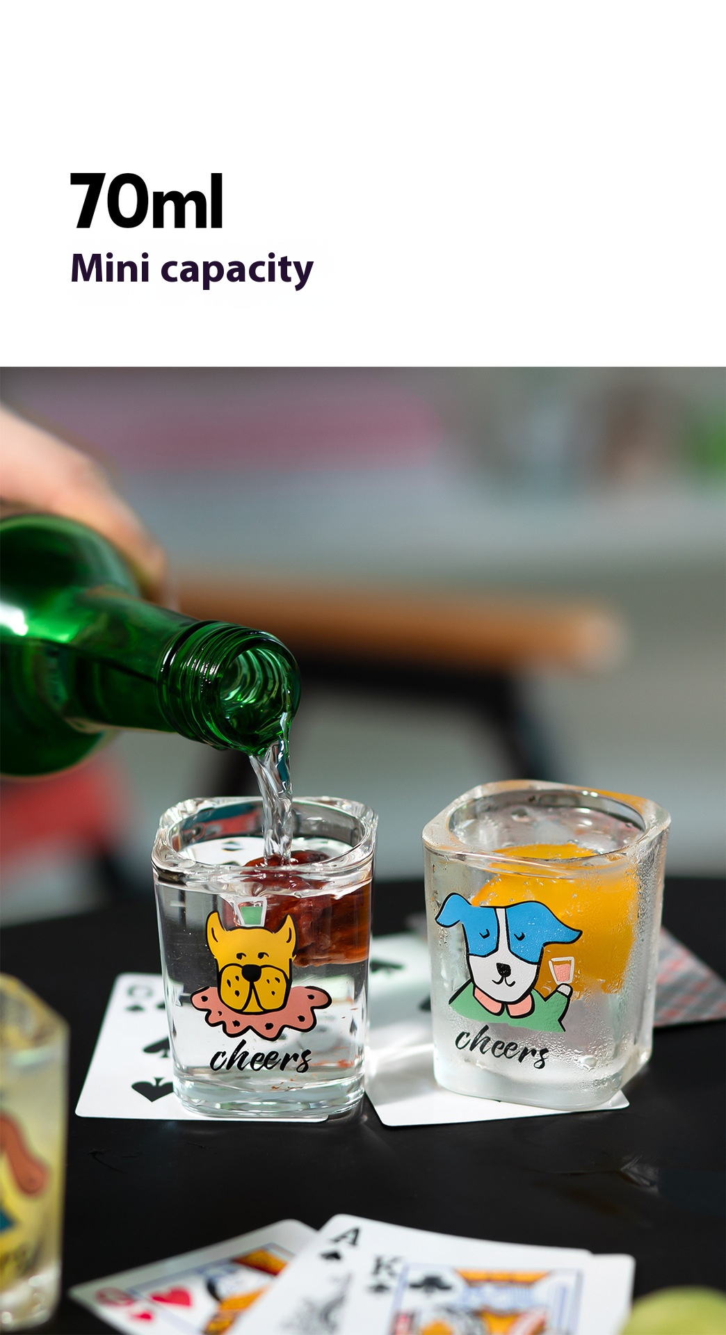 4 pcs/ set of Soju Mug Zoo Animal Dog Pattern White Wine Mug Family Party BFG Lovely Glass Cup