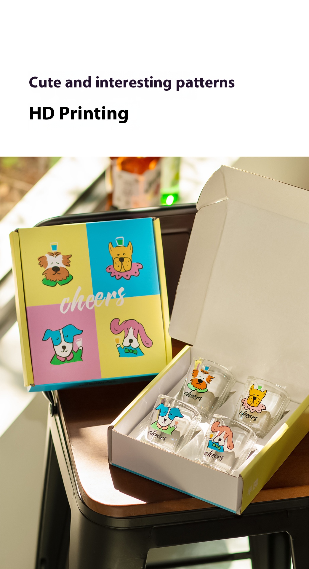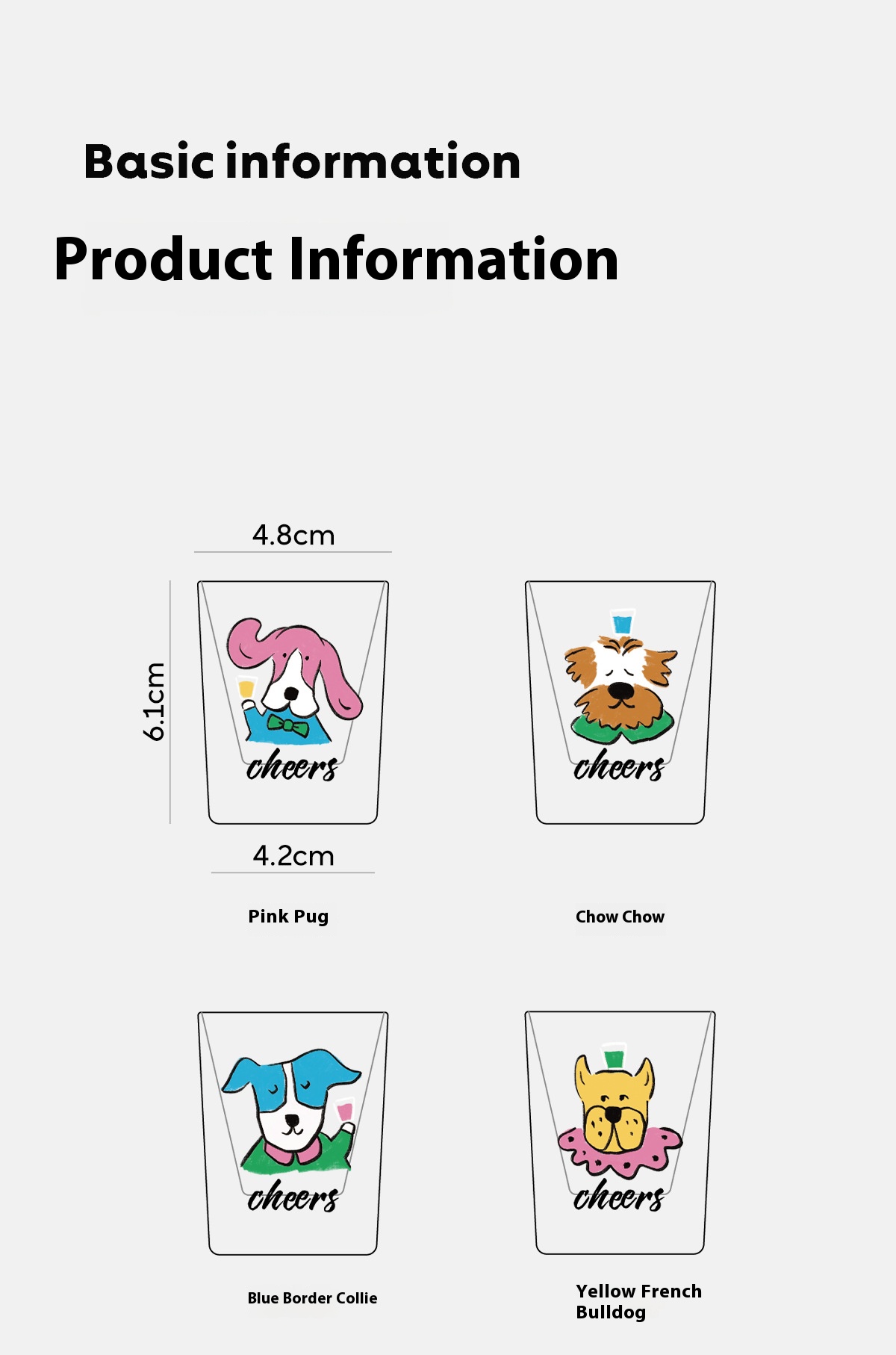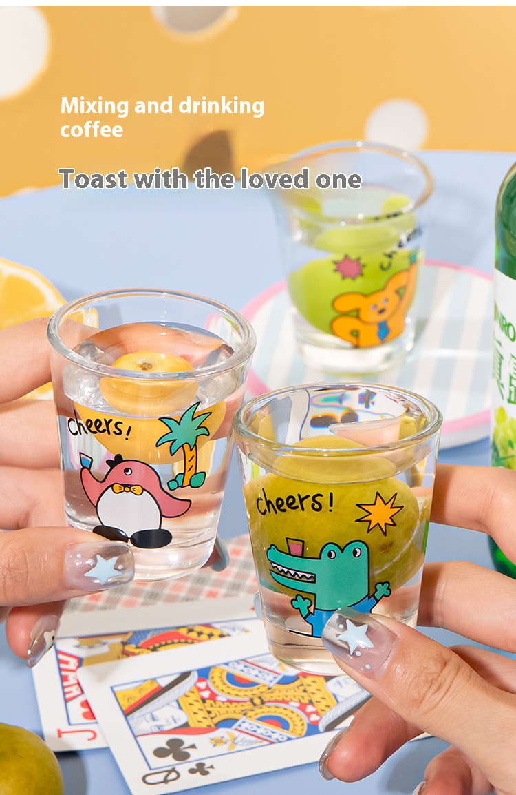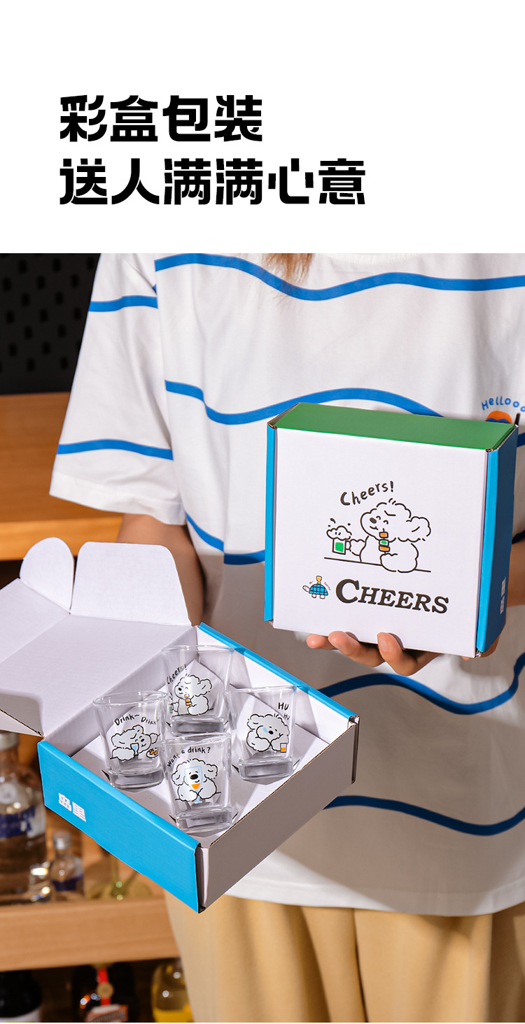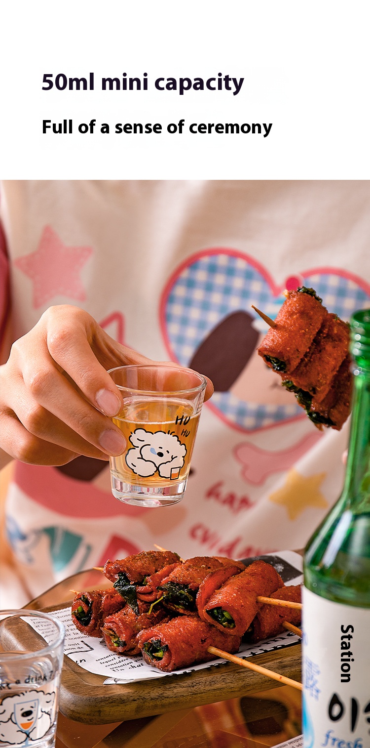 4 pcs/ set of Soju Mug Zoo Animal Dog Pattern White Wine Mug Family Party BFG Lovely Glass Cup