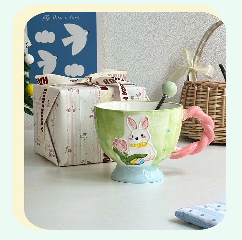 400ML High-quality Hand-painted Rabbit Coffee Cup Water Cup Exquisite Ceramic Mug with Gift Box Set Easter gift