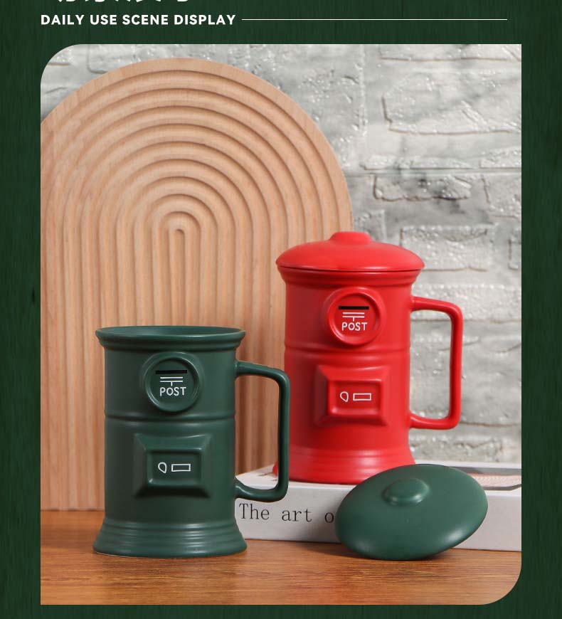 Creative retro large-capacity mailbox water cup, mailbox ceramic cup. Capacity: 500ml/16.9us.