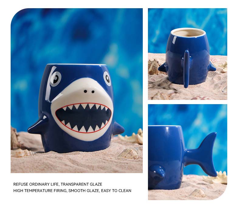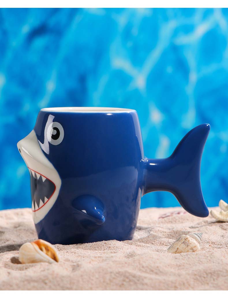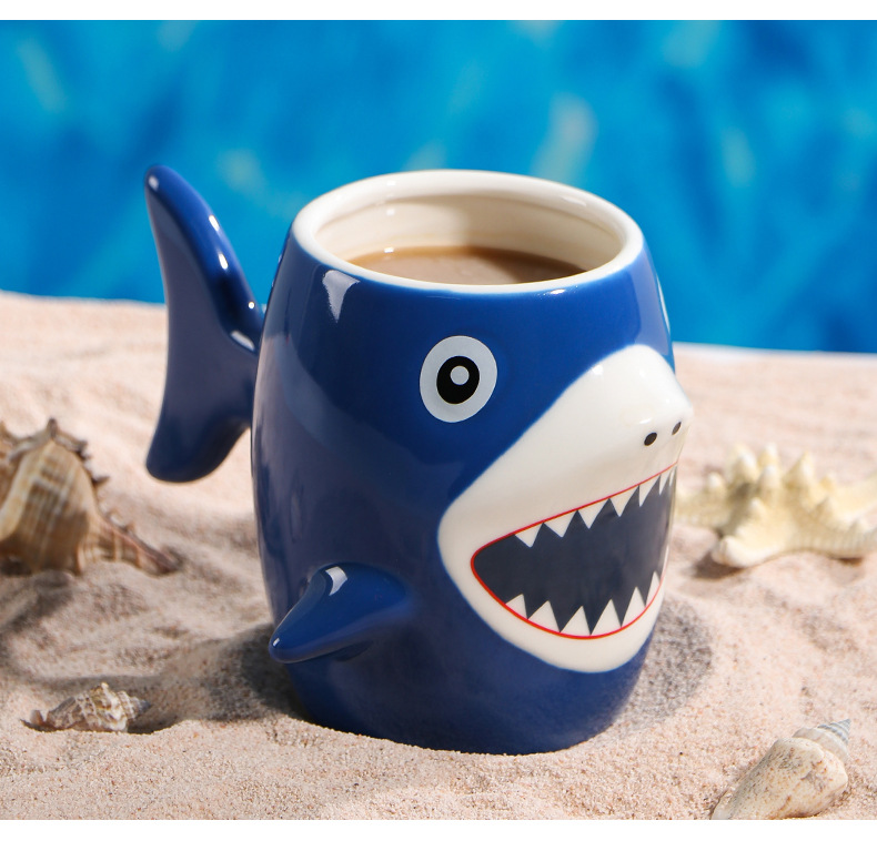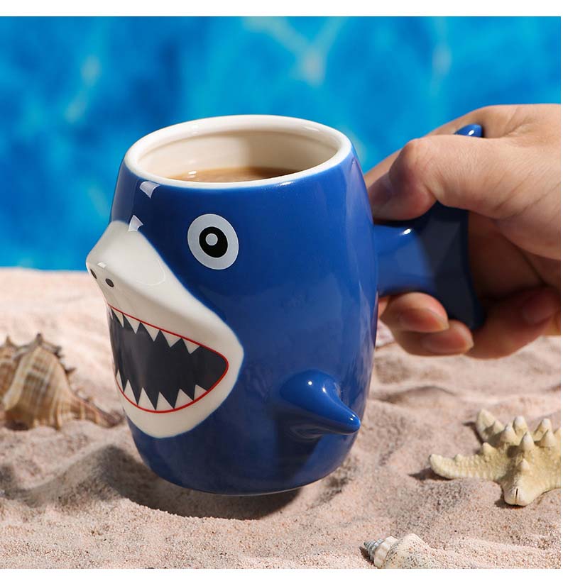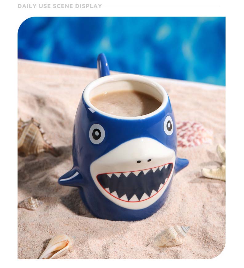 Cartoon shark ceramic cup, high appearance level mug, coffee cup. Capacity: 450ml/15.21us
