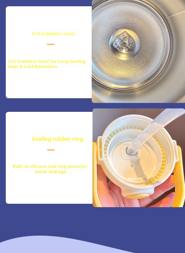 It can hold hot water, cold water, juice, coffee, etc. Wide opening, easy to clean