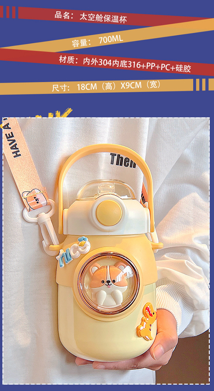 This water cup has five animal patterns available, the inner liner material: 316 stainless steel, shell material: 304 stainless steel, insulation performance: 6-12 hours, capacity: 650 ml/23.89 oz,safe and leak-proof, you can keep it in your bag and carry it with you., safe and healthy. If you like it, come and order it!