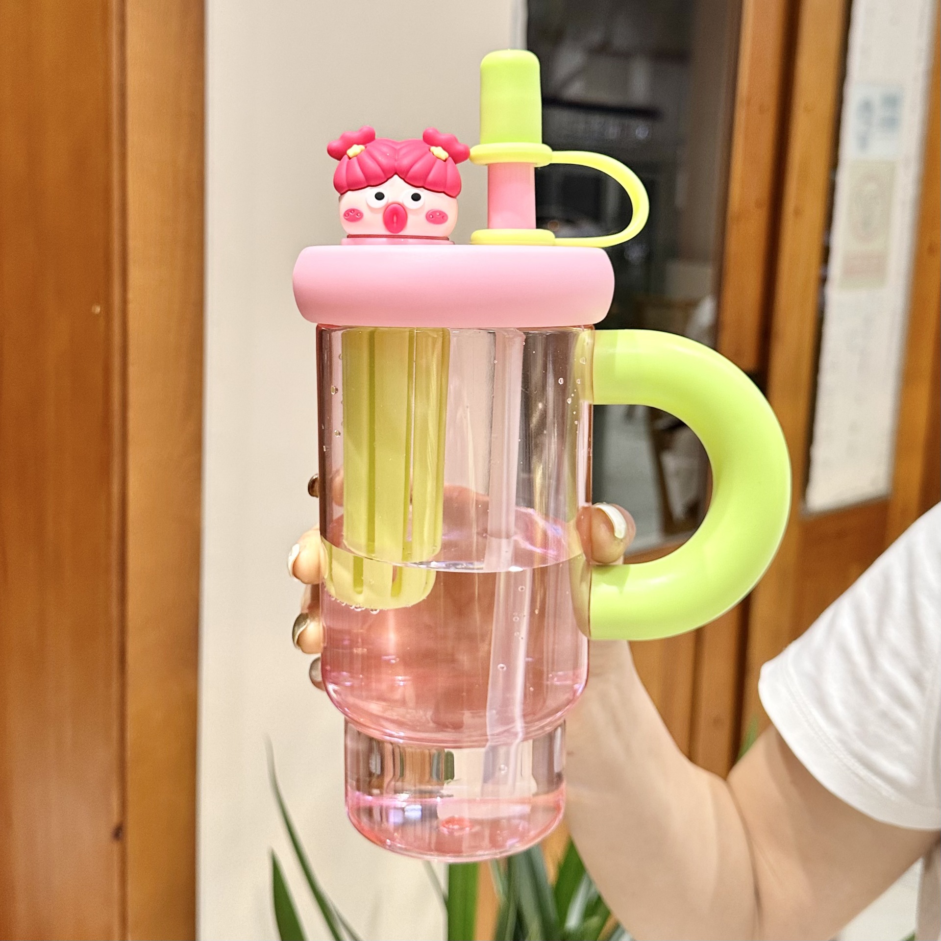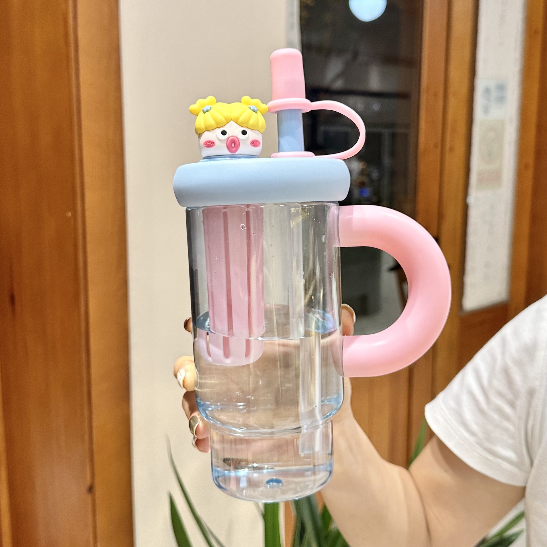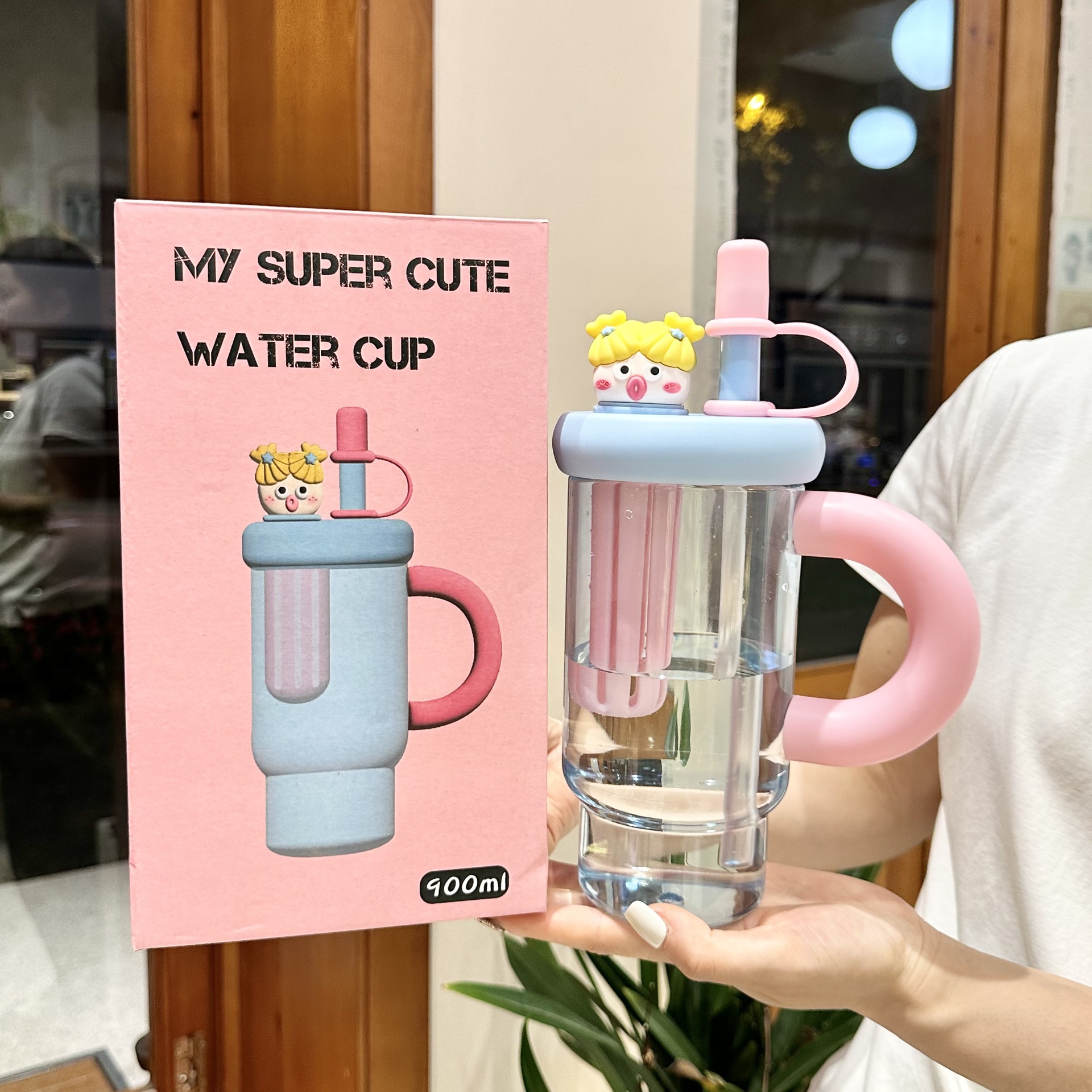 A 900ml cute girls' cup that can meet the daily water demand. The unique shape makes it impossible to have the same cup as others.