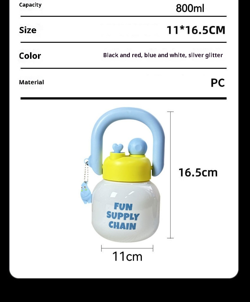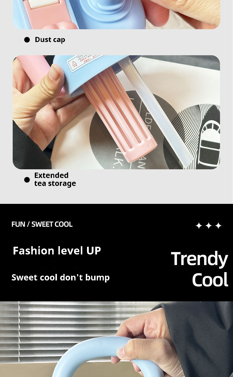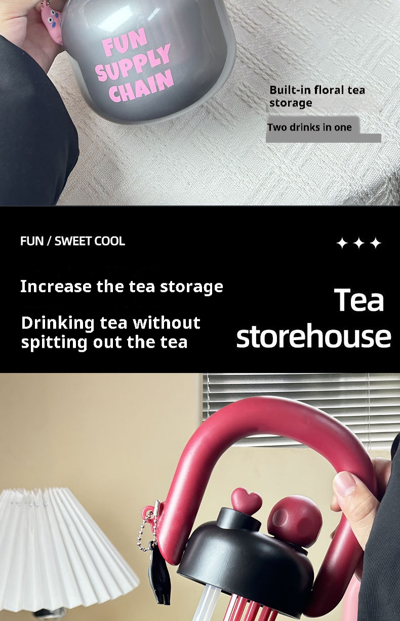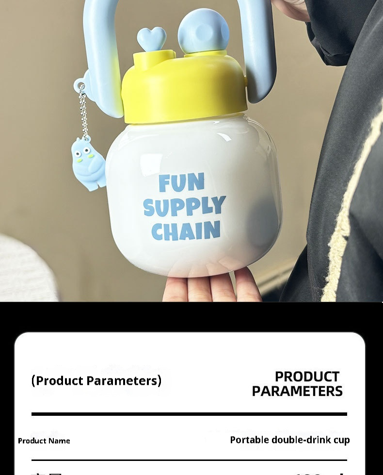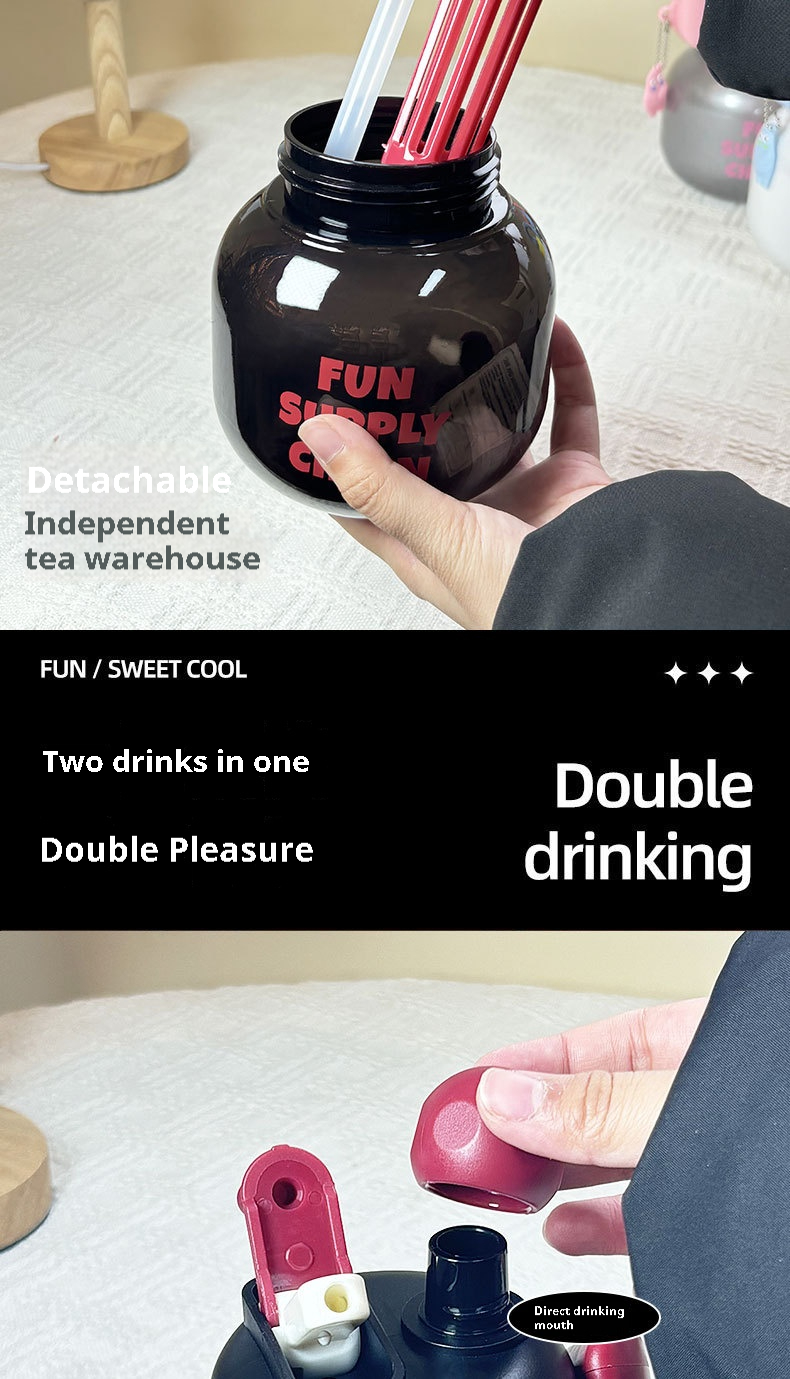 800ml double drinking cup U-shaped pick-up pot high temperature resistant plastic cup, detachable independent teahouse straw water cup